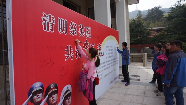 大家对革命先烈的墓碑进行清扫,向革命英雄三鞠躬,并敬献了花篮,青年们来到抗日战争宣传展板前参观,追思为国家兴衰、民族存亡不惜抛头颅、洒热血的英雄,深切缅怀革命先烈。活动中,大家在“清明祭英烈,共铸中华魂”宣传牌前依次留言明志,誓将革命先烈大无畏的奉献精神传承下去,在自己的岗位上开花结果,让青春无悔。