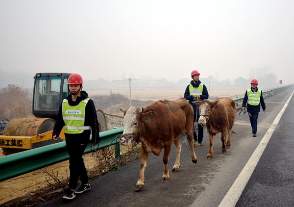 12月30日上午,位于公司承建的合宁05标境内高速上惊现牛群。情况万分危急,合宁05标“党员应急小分队”历时6个多小时,合力将牛群一一找回并固定在安全位置,成功化解了一场高速安全危机。