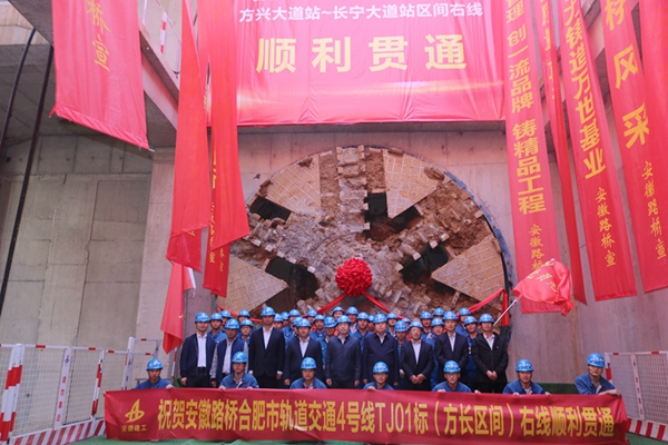 10月12日上午,合肥轨道交通4号线01标方兴大道站—长宁大道站区间顺利贯通,是4号线里程超一公里以上首条完成贯通的区间。公司总经理、党委副书记钱申春,副总经理、党委委员任杰,市政分公司领导班子出席了贯通仪式。