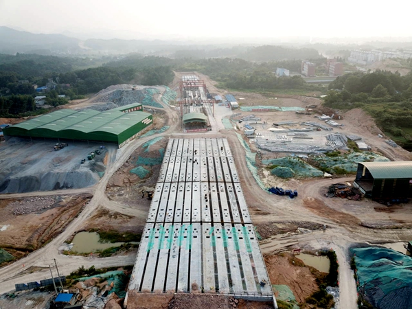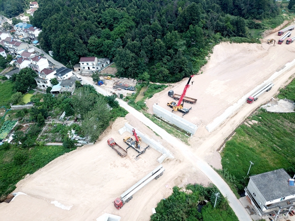 截至目前,万罗山梁板架设、赤岭一桥及复兴桥下构、郭家桥立柱施工已全部完成,水稳站基础施工提前启动。