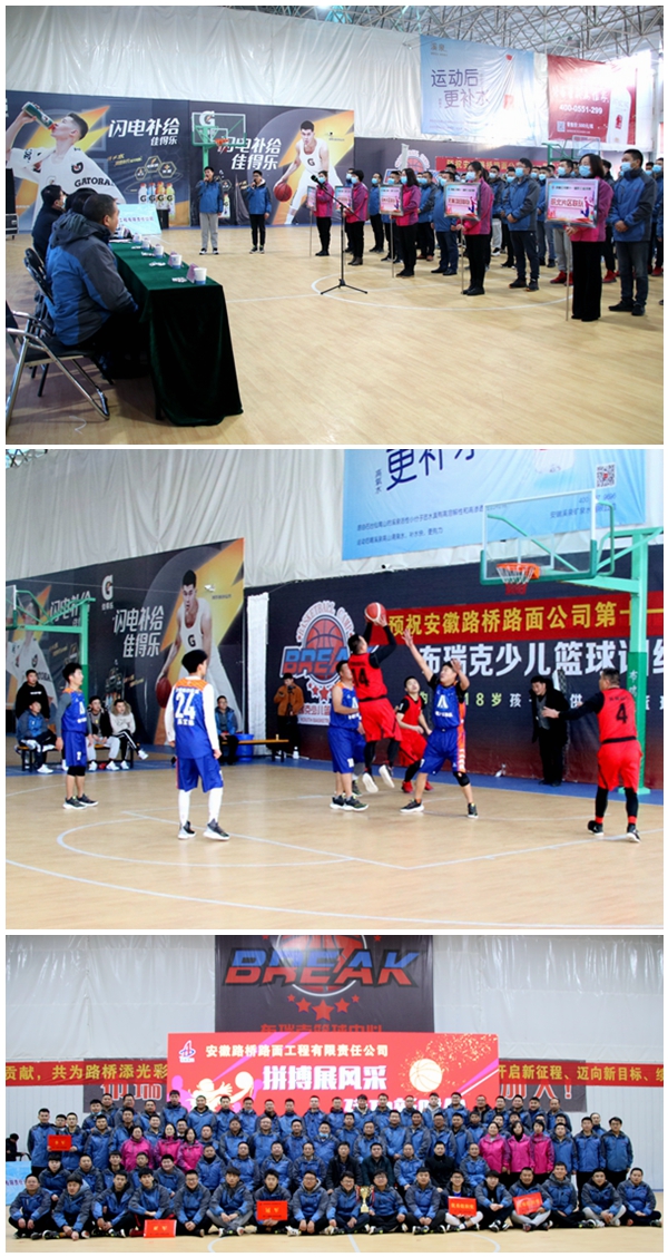 为丰富职工文化生活,增进职工沟通交流,促进企业文化建设,提高团队凝聚力,12月30日至31日,安徽路桥路面公司第十一届职工篮球赛在合肥布瑞克篮球馆成功举办。公司党委委员、纪委书记林绪坤,工会主席杨建强出席开幕式。