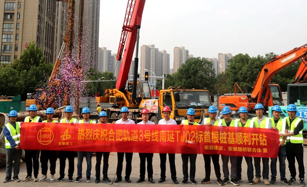 开局就是决战、起步就是冲刺。2020年9月29日,项目仅用不到半个月的时间完成各项准备工作,在合肥轨道2、3号线延长线全线率先开钻首桩桩基,比预定时间提前一个月。项目部锚定节点工期,自我加压,加强管理、科学调度,积极细化施工组织,制定每日施工任务清单,增加机械设备投入,全面掀起劳动竞赛大干热潮。针对地质特点,引进400大功率旋挖钻机并改良钻头为螺旋钻头,提高了设备使用率和人员劳动生产率。畅通施工各方沟通渠道,积极征集合理化建议,凝聚各方智慧努力加快施工进度。