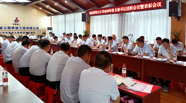 5月29日,市政分公司2020年度党支部书记述职评议暨表彰会议在引江济淮繁华大道桥项目部召开,分公司领导班子成员、分公司后勤部门负责人及所属各项目支部负责人、项目经理和部分职工代表80余人参加会议。