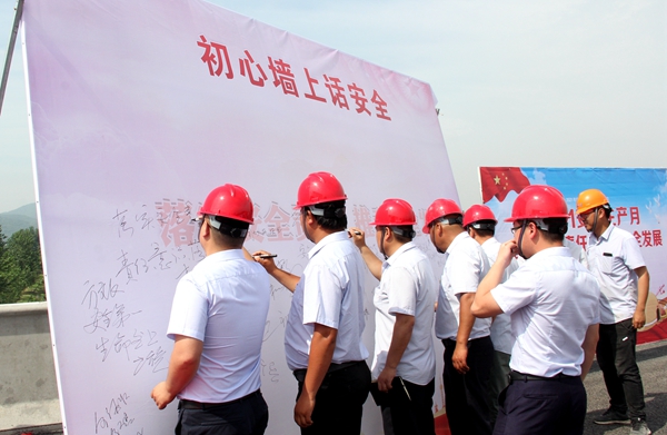 活动中,党员安全员代表、技术员代表、劳务班组代表分别做了表态发言。分公司总经理张庆书宣读了本次“安全生产月”活动方案,并带头宣誓。活动还安排了“初心墙上话安全”集体签名、改扩建安全生产标准化观摩等环节。