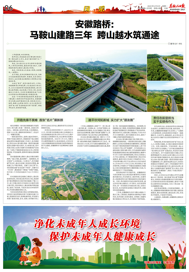 名媒聚焦|《马鞍山日报》:安徽路桥——马鞍山建路三年 跨山越水筑通途