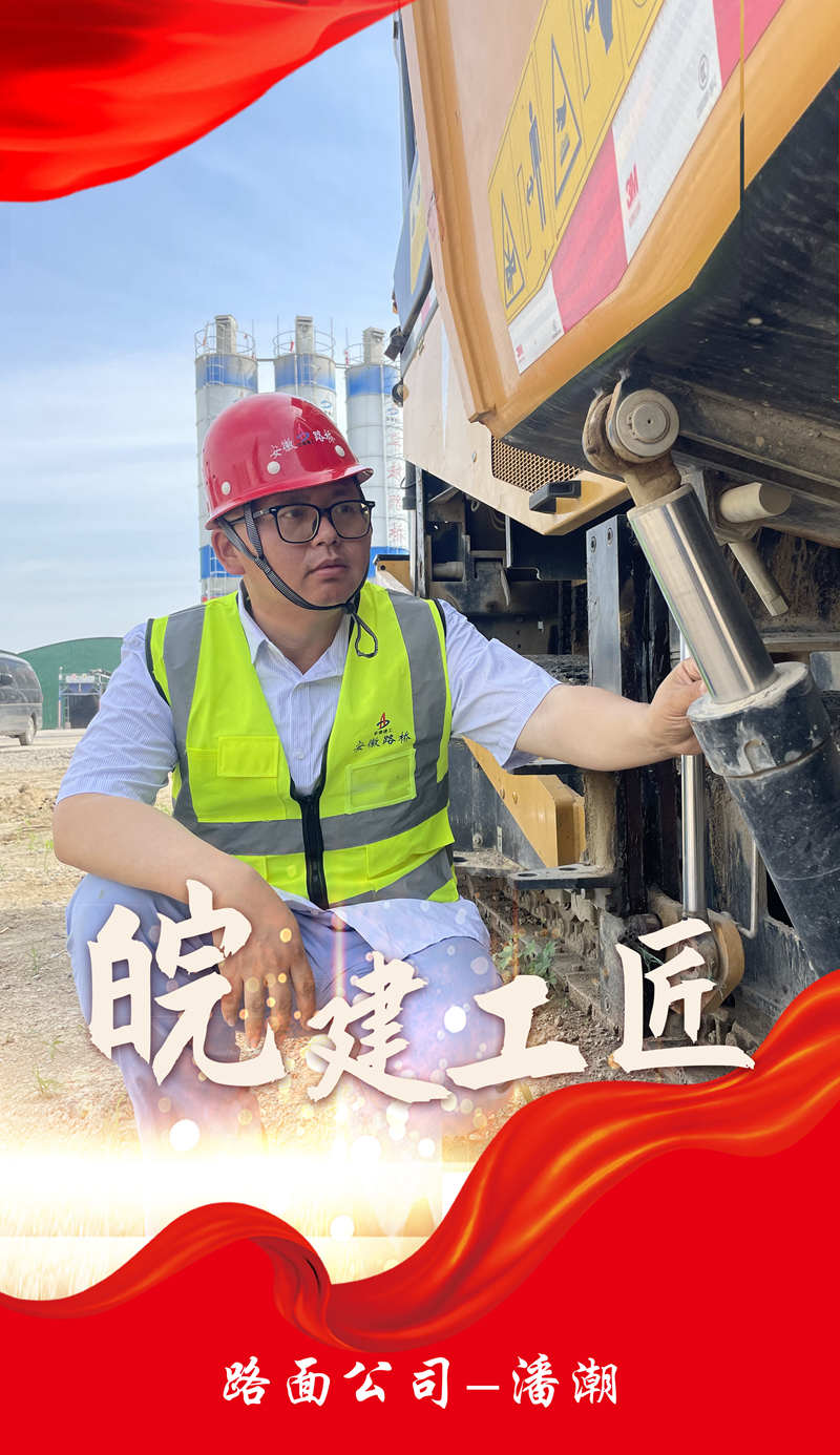 潘潮,项目施工班组负责人,曾获安徽省金牌职工。参加工作以来,一直从事施工现场设备操作和维修工作,先后参建宁宣高速、京台高速、江西泰赣高速等多条高速公路及国省干线,累计参建里程近500公里,所参建的项目荣获詹天佑奖、黄山杯、国家优质工程奖、全国市政金杯示范工程等多项荣誉。