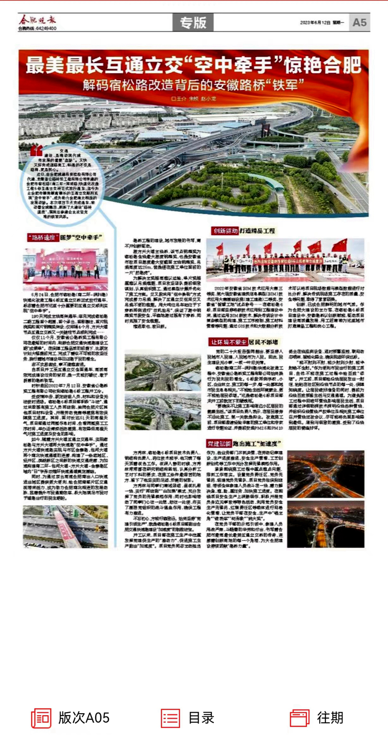 【名媒聚焦】合肥晚报:最美最长互通立交“空中牵手”惊艳合肥 解码宿松路改造背后的安徽路桥“铁军”