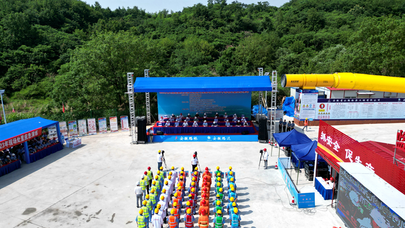 6月21日上午,围绕“人人讲安全 个个会应急”主题,2023年安庆市交通建设工程安全应急演练在公司承建的S22天天高速营岭隧道顺利举行。省交通工程质量安全管理服务中心、安庆市交通运输局、市应急管理局、市交通控股集团、怀宁县人民政府相关领导,公司党委委员、副总经理韦秀刚等出席演练活动。