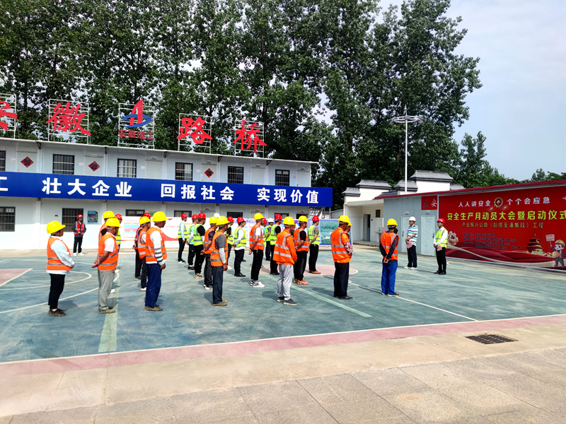 项目部坚持一手抓安全、一手抓生产,以“两不耽误、两相促进”为宗旨,加大宣传力度,力争实现“1+1>2”的效果。6月1日,项目部联合霍邱县交通局举行了安全宣誓暨全国安全月活动启动仪式,参观安全月主题图片展、学习安全生产相关知识特别是安全生产“八安八险”等内容,监理单位、项目管理人员、劳务队伍代表等30余人还进行了安全生产集体宣誓。5月,项目部组织召开劳动竞赛启动仪式,结合项目进度制定了竞赛活动方案并及时宣贯、展开讨论。同时,在项目部及施工现场醒目位置悬挂横幅23条,在公告栏张贴各班组施工进度完成情况并动态更新,营造劳动竞赛浓厚氛围。设置安全围挡及安全警示标牌,保证进度的同时落实安全制度。