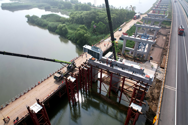 名媒聚焦|蚌埠日报:G36宁洛高速蚌明改扩建01标项目——首片钢箱梁顺利架设