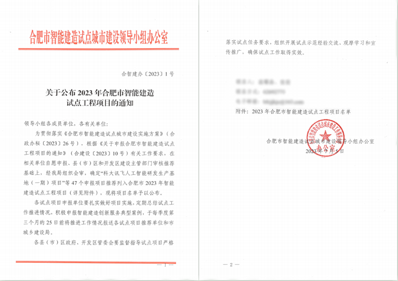 公司两重点项目入选2023年合肥市智能建造试点工程项目