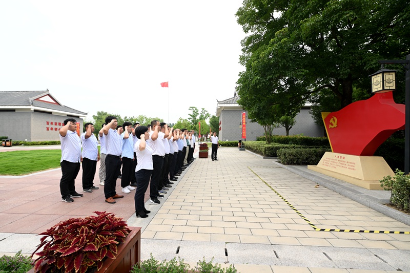 合肥党史馆位于肥东县白龙镇青龙厂社区褚老圩组,是合肥市首个全党史脉络红色历史场馆,大家一边认真聆听讲解,一边驻足观看,身临其境地进行了一场党史学习之旅,更加深入地了解合肥红色故事。参观结束后,双方党员共同重温了入党誓词。