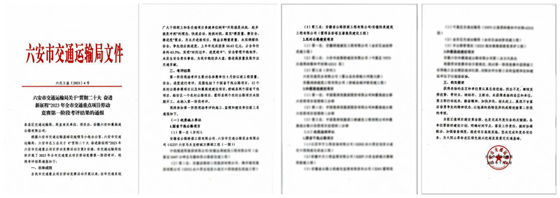 公司承建项目在六安市交通重点项目劳动竞赛考评中取得佳绩