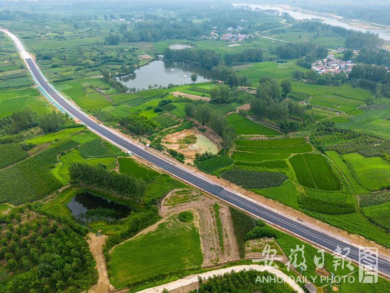 7月25日,拍摄的由安徽路桥承建的霍邱县产业振兴公路。该项目全长 19.245公里,目前路基工程已完成,正在全力推进路面施工阶段,计划2023年10月完成项目整体建设任务。建成后将解决沿线5个乡镇30万群众出行问题,带动沿淮、沿淠乡镇产业发展,巩固脱贫成效,助力乡村振兴。