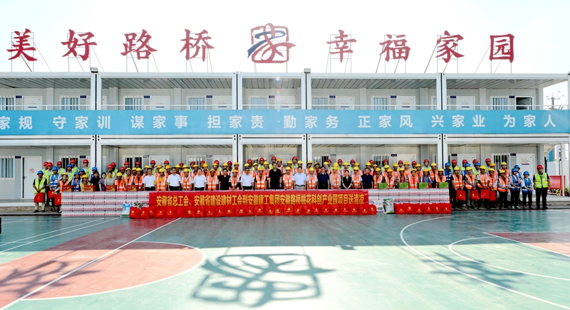 7月31日下午,安徽省总工会一级巡视员胡东辉,省建设建材工会(厅文明办)主任、一级调研员程德旺等一行到桃花科创产业园项目开展“送清凉”慰问活动,调研项目建设情况并召开座谈会,就产业工人培育、劳动竞赛、先进典型选树等工作进行深入交流沟通,并提出具体指导意见。