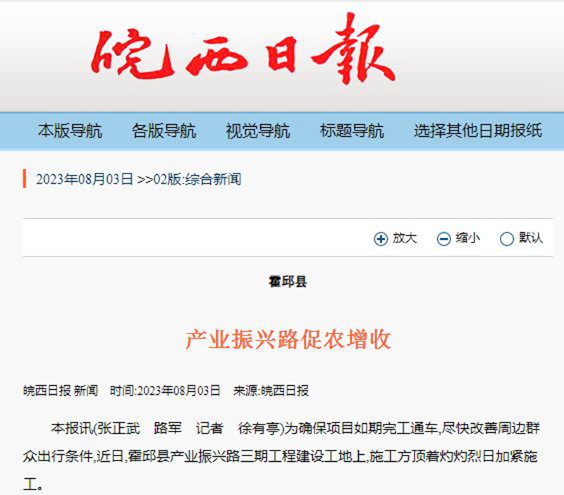 【名媒聚焦】皖西日报:安徽路桥产业振兴路促农增收