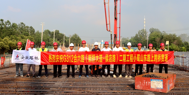 G312合六路工程全线首座上跨桥实现双幅贯通 发布时间:2023年08月25日 来源:市政分公司 发布人:党委工作部 作者:李德玉 浏览:4057次 8月24日下午,随着小蜀山东路上跨桥北半幅最后一联现浇箱梁顺利浇筑完成,G312合六路(新桥大道-侯店路)工程二标段重要工程节点——小蜀山东路上跨桥全幅贯通,标志着项目全线首座上跨桥实现双幅贯通,为全线贯通奠定了坚实基础。