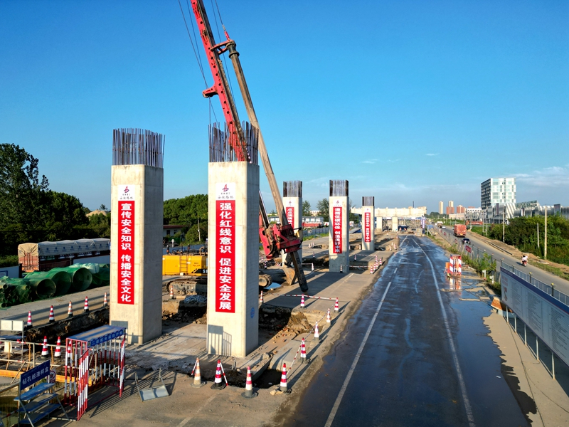西湾路主线高架桥是项目关键控制性工程,也是项目全线交叉施工最多的工程点。结合工程实际,项目部提出“有一段做一段,做一段成一段”和“下部结构紧跟桥梁施工、立柱施工紧跟盖梁浇筑”的施工思路,动态对工程计划进行调整,力争缩短交叉施工中的等待时间,保证工序衔接紧密。6月28日,项目完成全线首榀箱梁预制施工,8月14日,完成全线首榀盖梁施工,为保持工程进度全线领先奠定了坚实的基础。