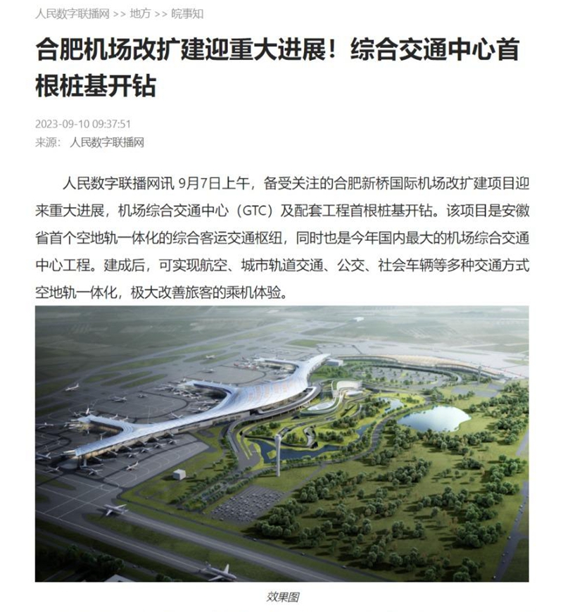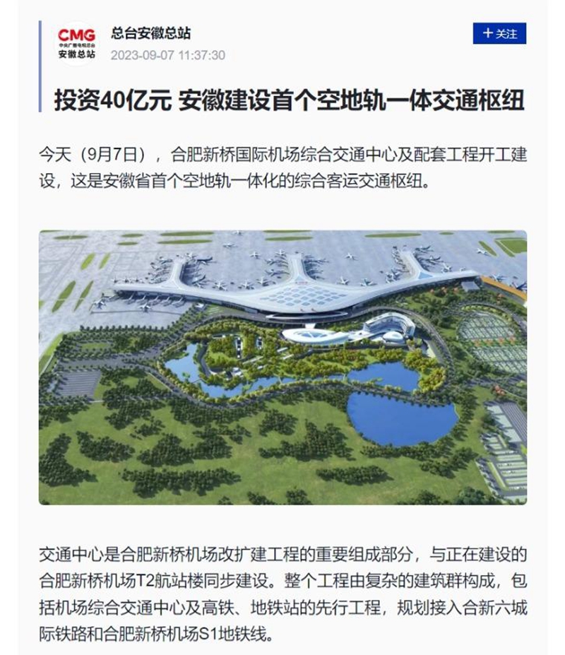 【名媒聚焦】央视新闻、人民日报等国家级主流媒体聚焦安徽路桥合肥新桥机场综合交通项目建设