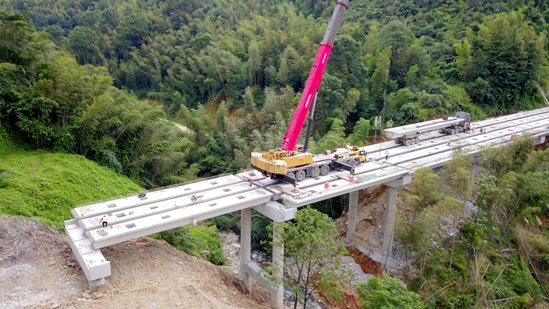 9月11日下午,吉康高速改扩建C1标杨公山大桥最后一片预制梁板的架设成功,为下一步主线交通导改及全线通车打下了基础。