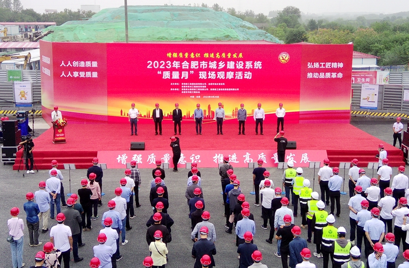 9月26日上午,在全国上下深入开展全国第46个“质量月”活动之际,由安徽建工集团、合肥市城乡建设局、合肥市重点局主办的2023年合肥市城乡建设系统“质量月”现场观摩活动在G312合六路工程项目现场举行。安徽建工集团股份有限公司副总经理朱忠明为活动致辞,合肥市城乡建设局、合肥市重点局、合肥市政工程协会及来自全市城建系统的专家、嘉宾代表共计150余人参加观摩。