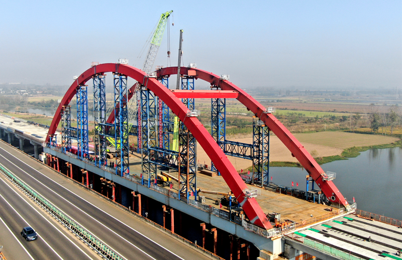 【百日攻坚大会战】G36宁洛高速蚌明改扩建01标项目:池河特大桥主桥拱肋顺利合龙