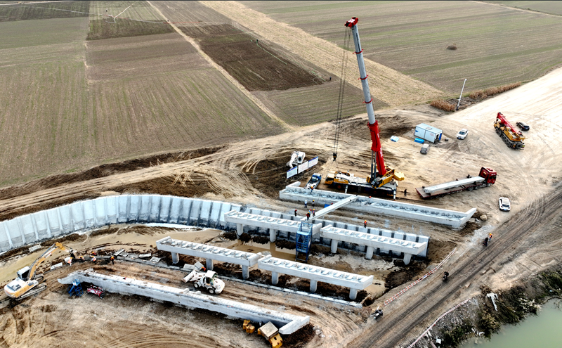 为加快推进工程建设,项目部进一步优化人员配置,克服土源紧张、征地困难、交叉施工等不利因素影响,疏通堵点,找准问题“卡点”,倒排工期、挂图作战、责任到人、扎实推进。截至目前,项目控制性工程跨淮北矿业铁路桥桩基施工基本完成。
