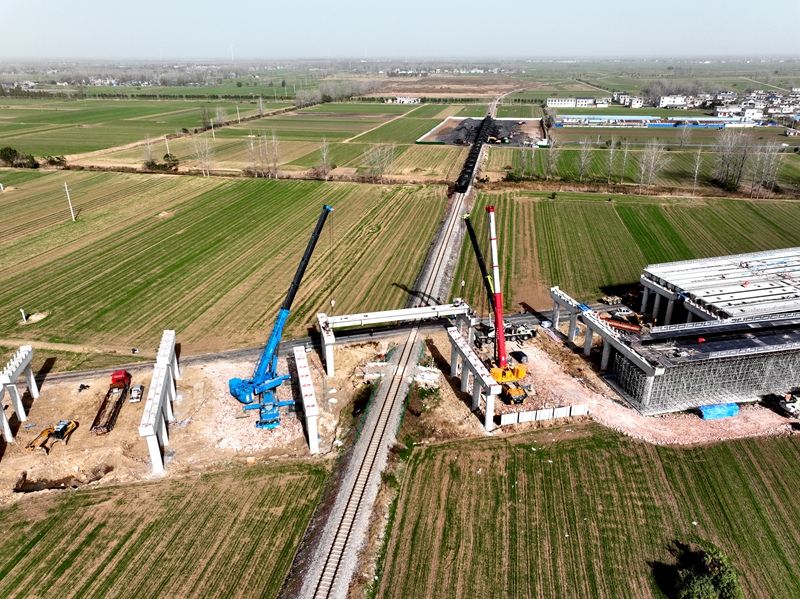 作为项目控制性工程,此次箱梁架设横穿淮北矿业铁路桥,位置特殊、地表崎岖、安全防护要求较高。项目部提前谋划,成立党员突击队,切实保障各施工环节紧密衔接。截至目前,该项目跨淮北矿业铁路桥桩基和墩柱以及路基工程圆管涵已基本完成。