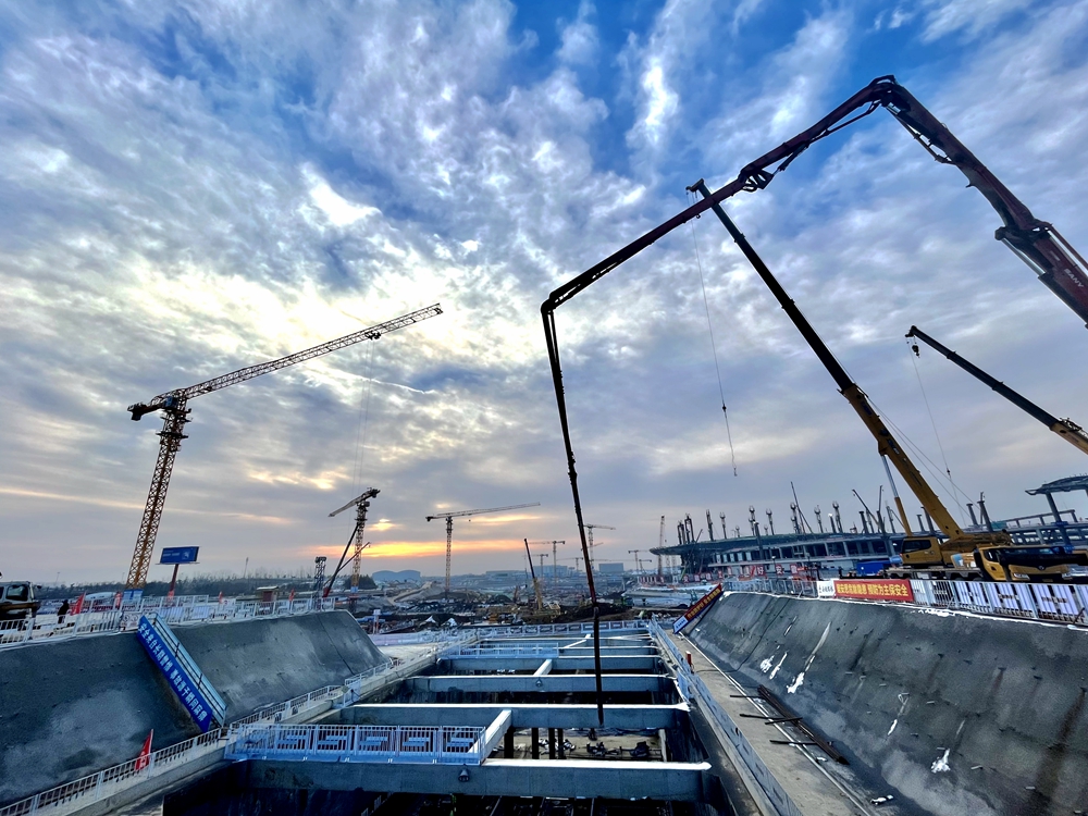 12月23日下午,合肥新桥国际机场综合交通中心项目历经约10小时的鏖战,圆满完成项目地铁S1线首块底板浇筑。