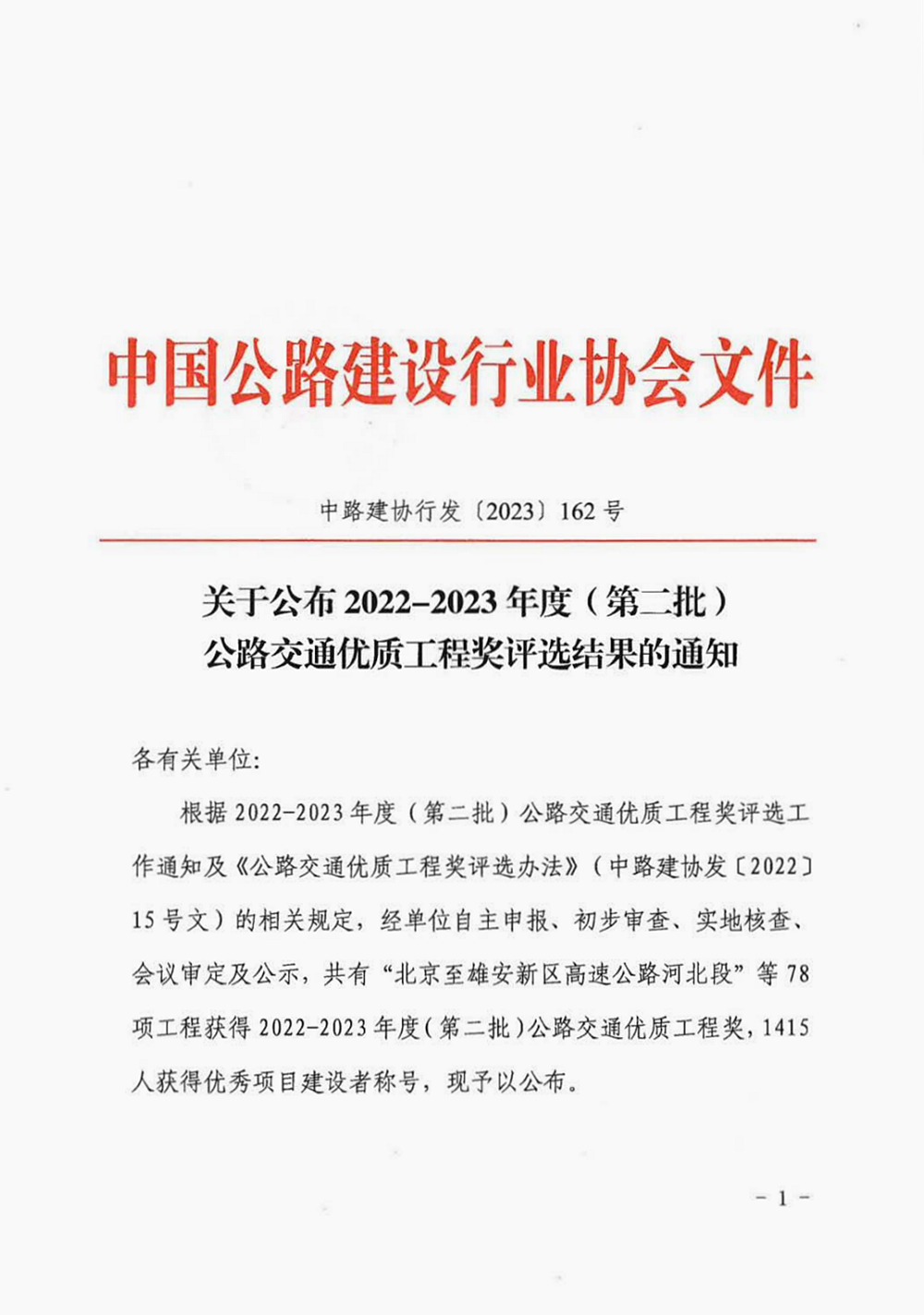 公路交通优质工程奖(李春奖)主要围绕建设管理理念、工程建设质量、科技创新成果等方面进行选拔,是全国公路交通行业最高质量奖,也是公路建设者的最高荣誉。