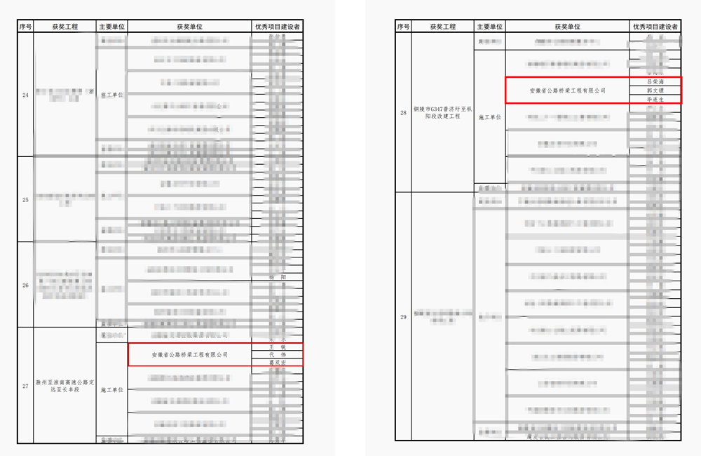 近日,中国公路建设行业协会公布2022~2023年度(第二批)公路交通优质工程奖(李春奖)名单,公司参建的滁州至淮南高速公路定远至长丰段、铜陵市G347普济圩至枞阳段改建工程2个项目榜上有名。截至目前,公司已摘得12项“李春奖”。