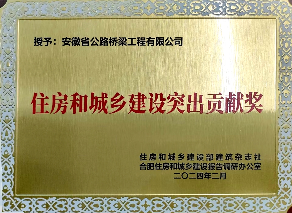 近日,住房和城乡建设部建筑杂志社、合肥住房和城乡建设局建设报告调研办公室联合颁发“住房和城乡建设突出贡献奖”,表彰在合肥大建设中作出突出贡献的单位,公司荣获殊荣。