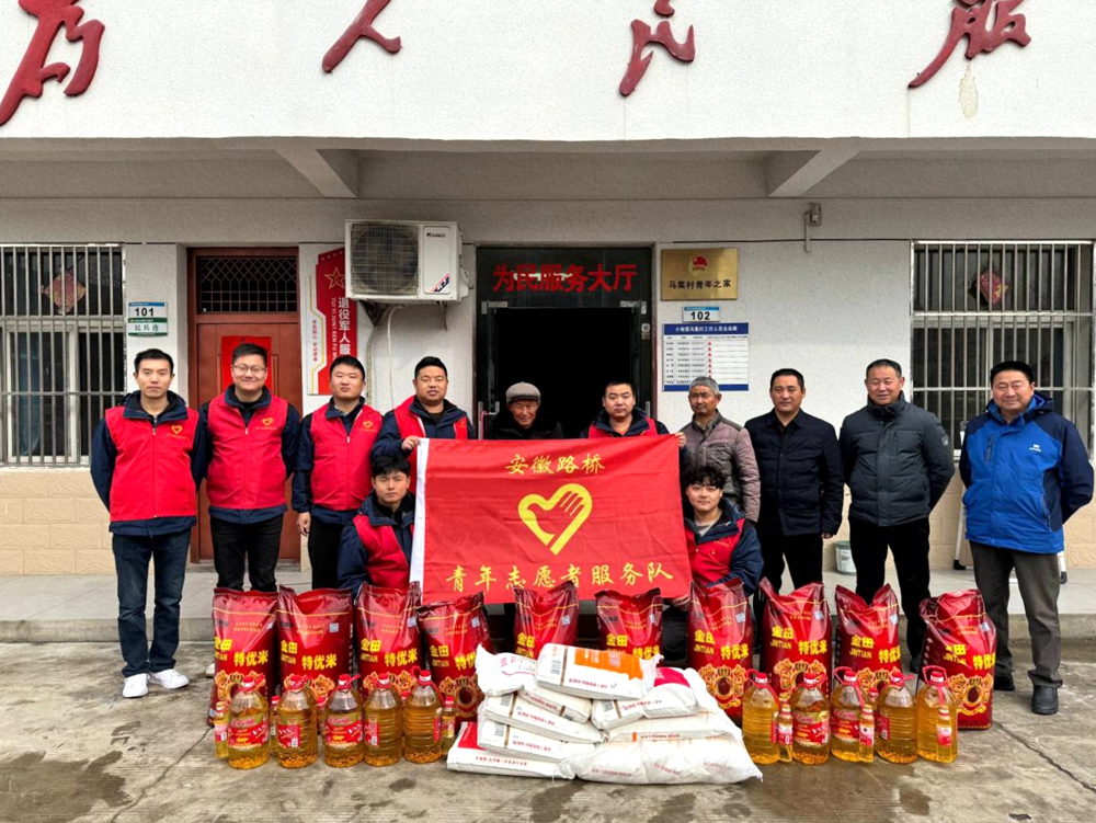 淮桐高速淮南段路基4标组织团员青年到寿县小甸镇马集村委会开展助困志愿活动,为困难群众及年老党员送去生活物资。