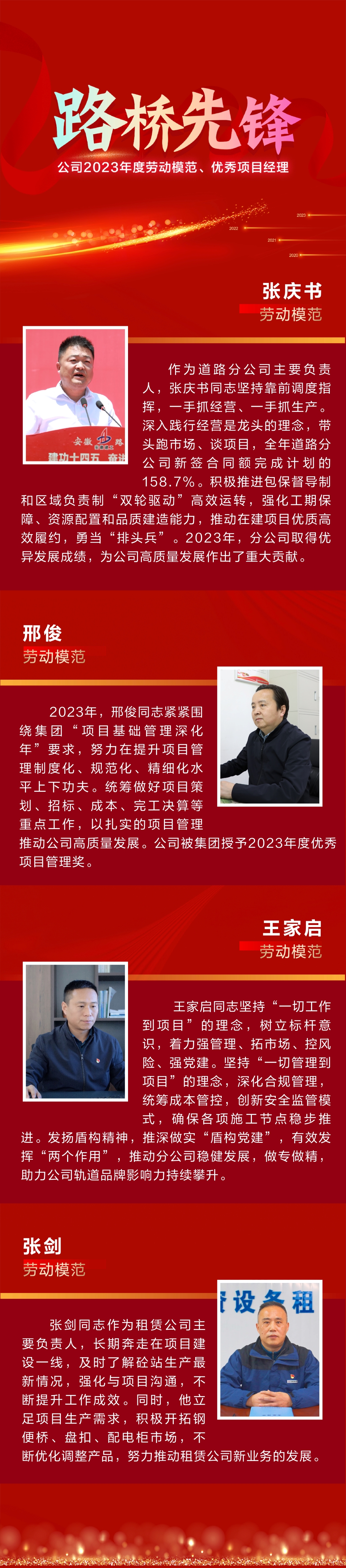 【路桥先锋】公司2023年度劳动模范、优秀项目经理风采展示 发布时间:2024年03月18日 来源:党委组织部(人力资源部、党委宣传部)、所属各单位 发布人:党委组织部(人力资源部、党委宣传部) 作者: 浏览:2508次