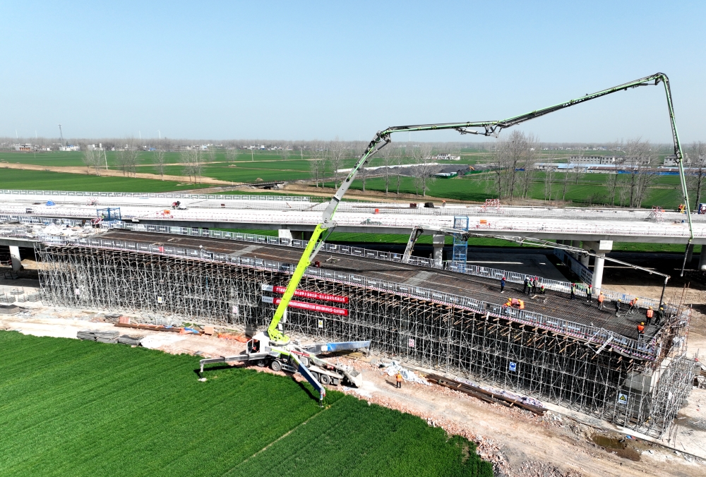 项目部提前谋划部署,抢抓施工黄金时段,迅速组织路基工作面备土,加强劳务队伍、机械设备和物资材料保障,在保证安全质量的前提下,迅速投入到紧张的施工生产中。3月19日,顺利完成涡阳互通DK0+233.949匝道桥第二联现浇箱梁顶板浇筑,至此,标段内现浇箱梁全部完成浇筑。