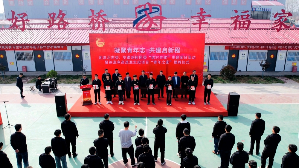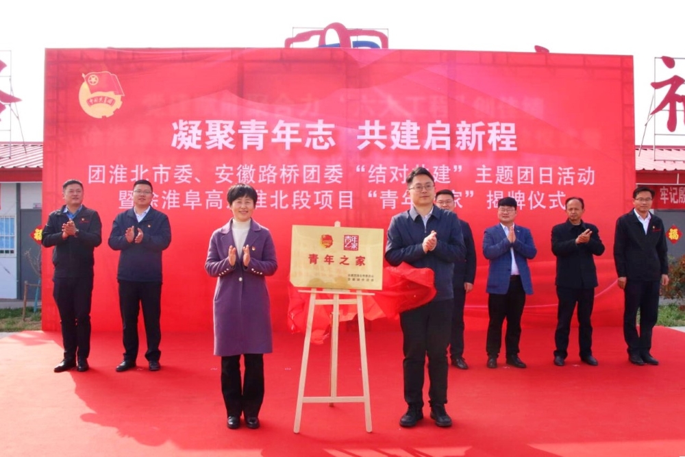 3月28日下午,团淮北市委、安徽路桥团委在徐淮阜高速(淮北段)项目联合开展主题团日活动。团淮北市委书记陈文靖、副书记李凯,公司党委委员、纪委书记王鹏出席活动并共同为徐淮阜高速淮北段项目“青年之家”揭牌。