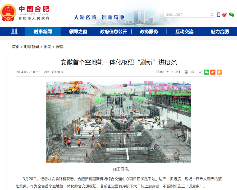 【名媒聚焦】多家主流媒体持续关注合肥新桥国际机场综合交通中心项目建设