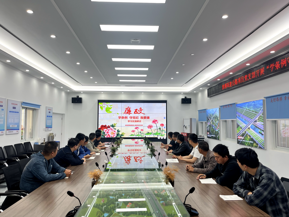 淮桐高速项目党支部开展主题为“学条例 守党纪 我要廉”交流研讨活动,项目党员分享党纪学习教育心得,筑牢思想底线,做到心有所畏、言有所戒、行有所止。