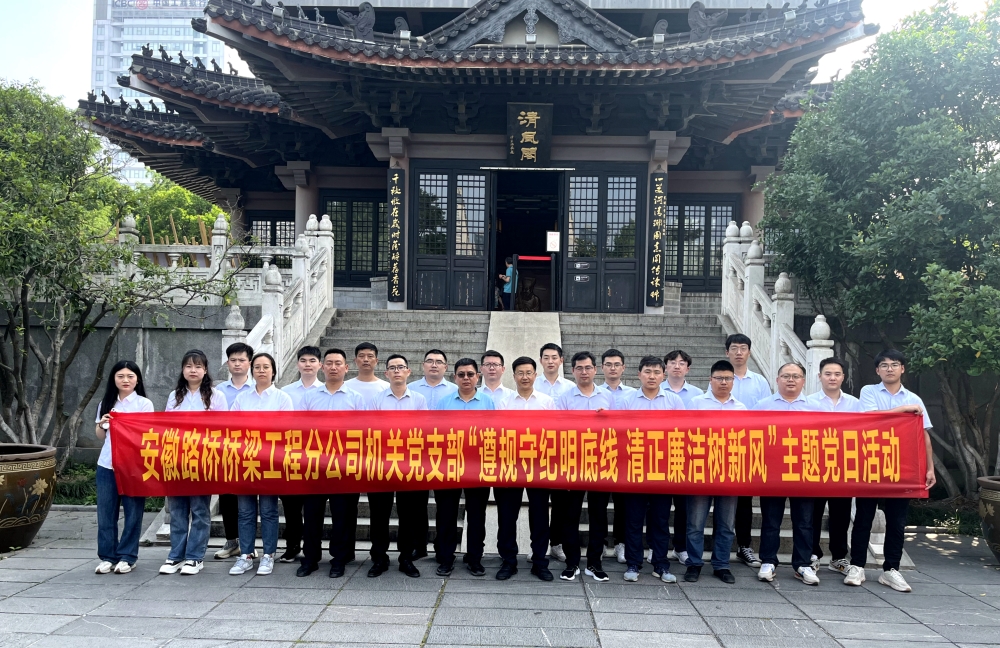桥梁分公司机关党支部到包公园开展“遵规守纪明底线,清正廉洁树新风”主题党日活动。党员群众在清风阁、包公祠等主题展区深刻感悟包公“孝忠、民本、刚正、清廉”的勤廉思想,并学习了焦裕禄等时代楷模的廉洁事迹。