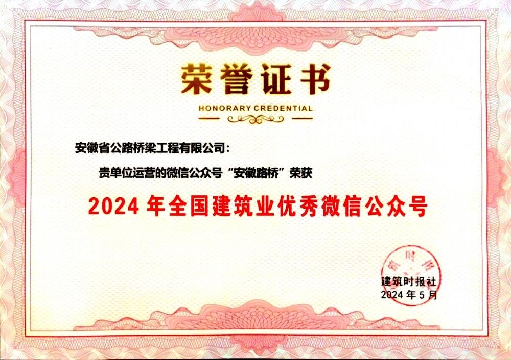 近日,建筑时报社发布2024年全国建筑业优秀微信公众号名单,公司微信公众号再度上榜,连续三年荣获“全国建筑业优秀微信公众号”称号。