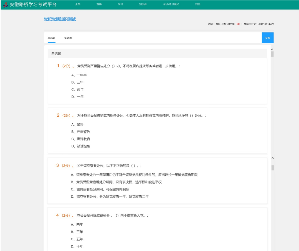 (公司信息化线上“党纪党规知识测试”)