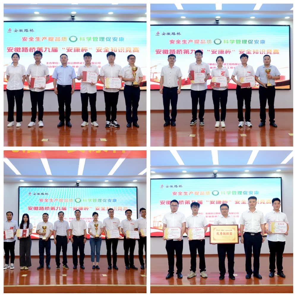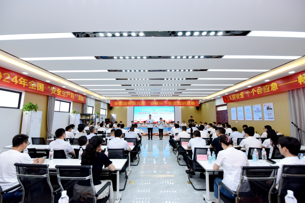 6月4日下午,安徽路桥第九届“安康杯”安全知识竞赛成功举办。此次竞赛以“安全生产提品质 科学管理促安康”为主题,旨在深化安全生产理念,提升员工安全素质。安徽省建设建材工会(省住建厅文明办)四级调研员邱亮出席活动并作点评讲话,安徽省建设工程质量与安全协会副秘书长赵永生出席活动,公司党委书记、董事长钱申春致辞。建工控股工程管理部(安全监察局)副部长胡晓东,公司领导韦秀刚、石怀远及所属各单位有关负责同志、职工代表共计80余人现场观看比赛。