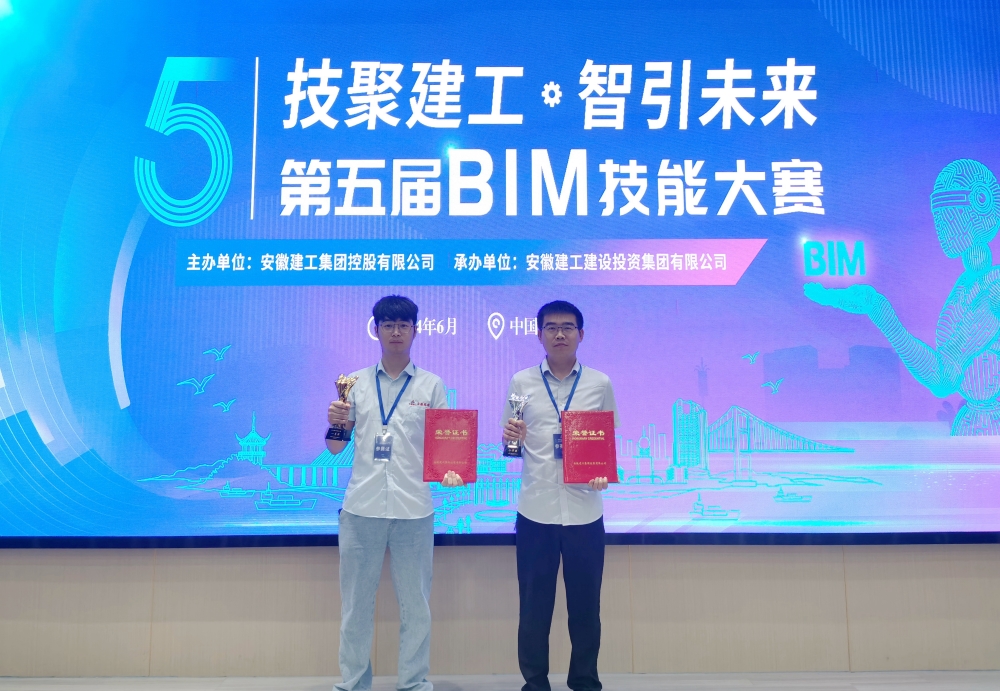 6月6日,安徽建工集团第五届BIM技能大赛顺利开幕,经过一天的激烈角逐,公司BIM代表队“路桥龙队”荣获团队优胜奖,轨道分公司谢晨明荣获市政交通专业一等奖,市政分公司张安强荣获建筑机电专业二等奖。