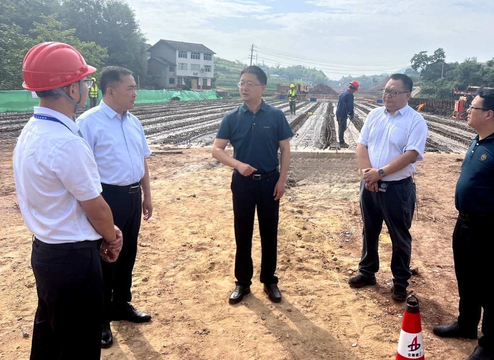 重庆市垫江县政协主席郑小波到垫江项目调研 发布时间:2024年06月14日 来源:建设公司 发布人:党委组织部(人力资源部、党委宣传部) 作者:杨建军 浏览:2901次 6月13日上午,重庆市垫江县政协主席郑小波到垫江项目调研,详细了解施工进展情况,强调要进一步强化安全质量管控,强化施工资源保障,加快项目建设,全力推动项目按期建成通车。 垫江县人民政府副县长杨岸鸿参加。