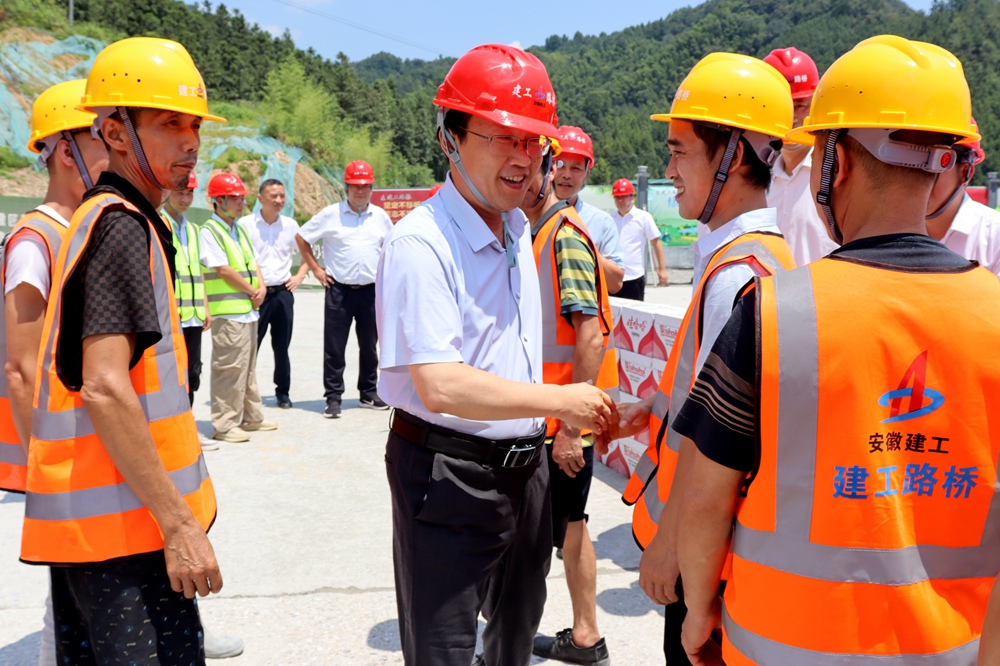 8月6日上午,建工股份党委副书记、副董事长、总经理李有贵一行,赴泾青高速项目调研并开展“送清凉”慰问。