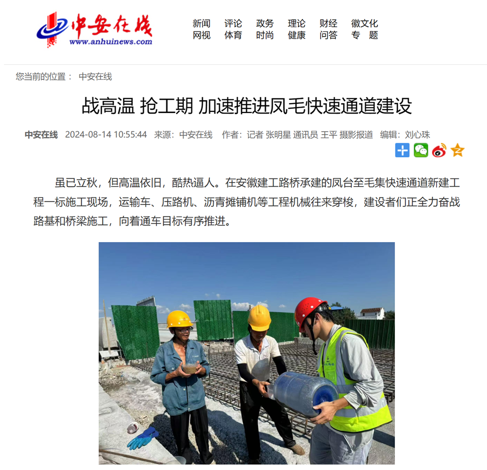 【名媒聚焦】中安在线、淮河早报:战高温 抢工期 加速推进凤毛快速通道建设