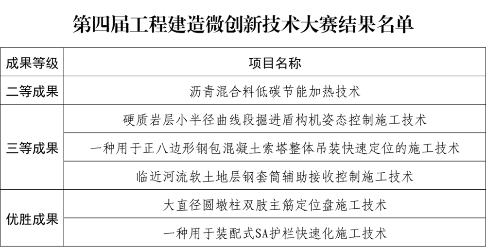 公司在中施企协第四届工程建造微创新技术大赛中荣获佳绩