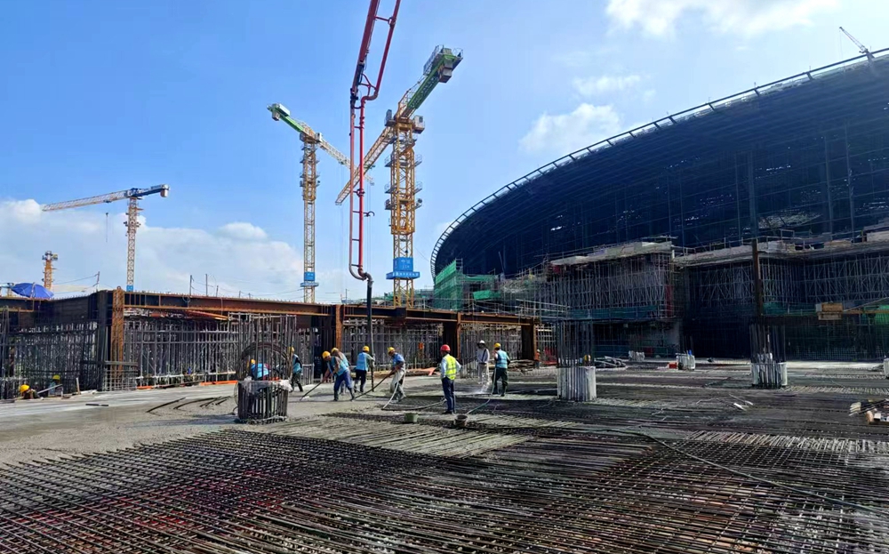 8月29日,合肥新桥国际机场综合交通中心项目GTC A4-1区空腔层结构混凝土浇筑完成。