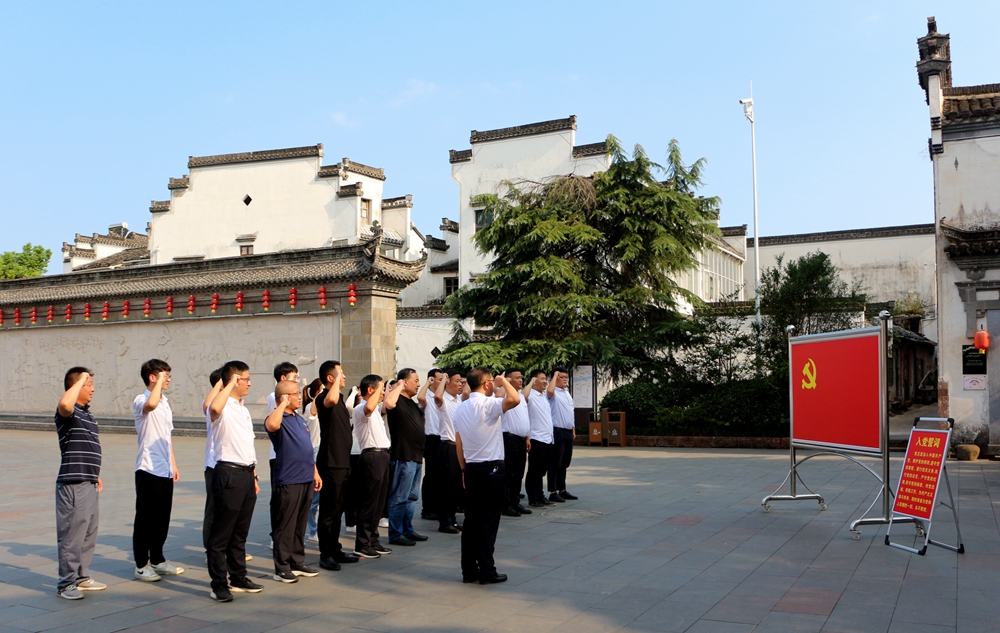 在岩寺新四军军部旧址纪念馆,参加活动人员学习了解了新四军在各个阶段的重大事件、战斗历程以及整编的重大意义,感受革命先烈的丰功伟绩及老一辈革命家为理想艰苦奋斗、流血牺牲、奋勇前进的伟大精神。全体党员在革命先烈的铜像前,面对党旗,重温入党誓词。