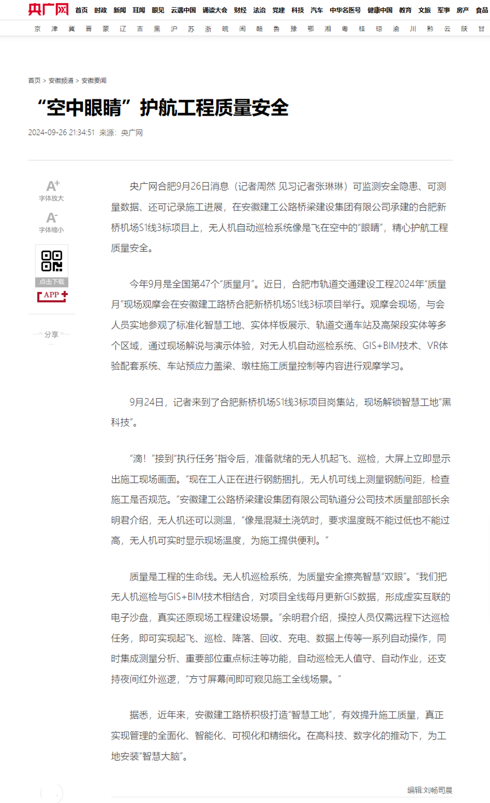 【名媒聚焦】央广网:“空中眼睛”护航工程质量安全